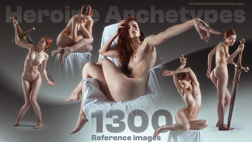 The Heroine Archetypes Reference Pack features 1300+ high-quality reference images that capture the essence of elegance, power, and dynamic movement. It is essential for illustration, concept art, sculpting, and character design artists.