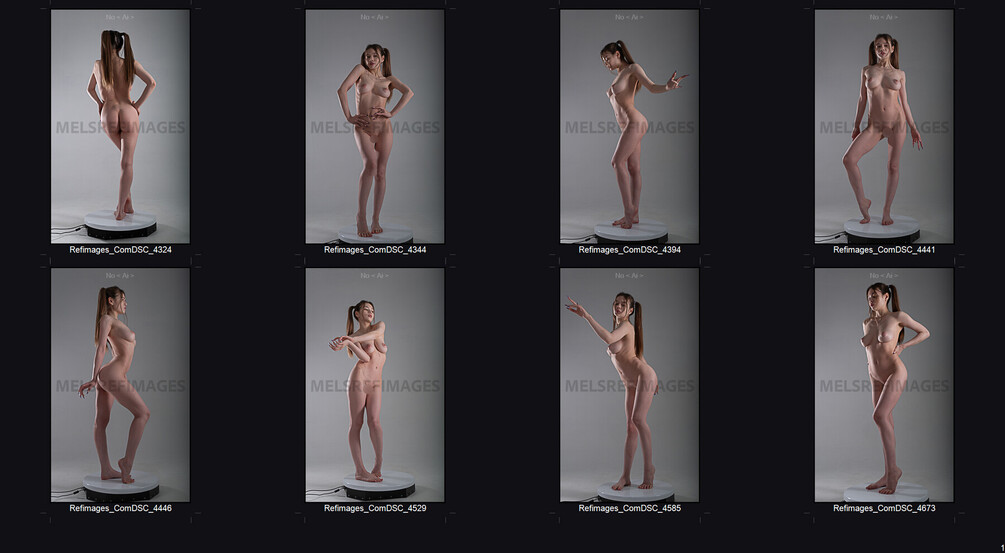 - Beautifully lit studio scenes showcase long, flowing hair and delicate body language